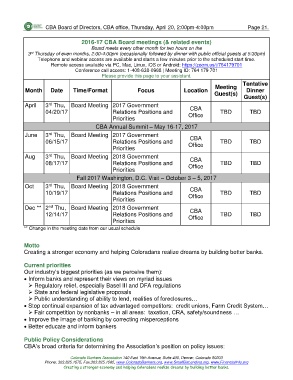 CBA Board of Directors, CBA office, Thursday, April 20, 2:00pm-4:00pm Page 21.