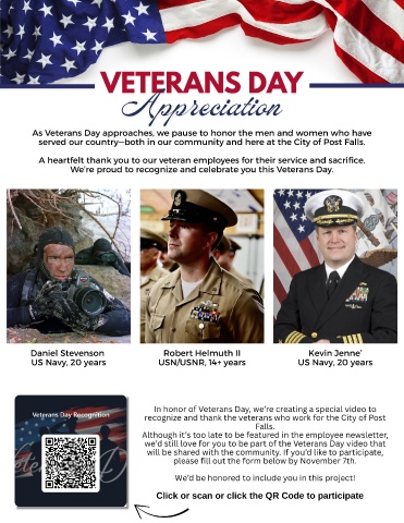 served our country—both in our community and here at the City of Post Falls.