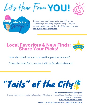 Send your news to Melissa.