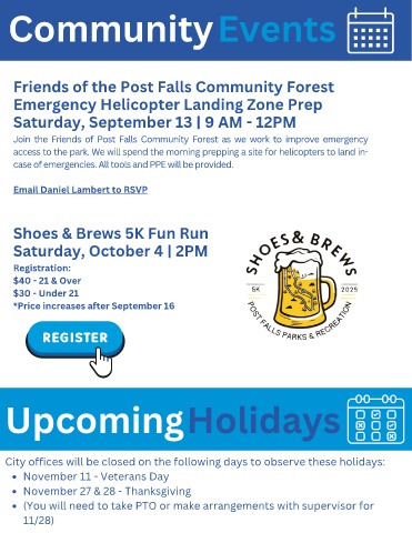 Join the Friends of Post Falls Community Forest as we work to improve emergency