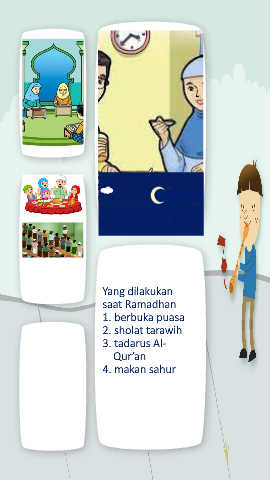 Yang dilakukan saat Ramadhan 1. berbuka puasa 2. sholat tarawih 3. tadarus Al- Qur’an 4. makan sahur