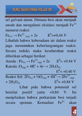 Reaksi Sel: 2Fe (s) + ½O 2(g) + 4H → 2Fe 2+ (aq)