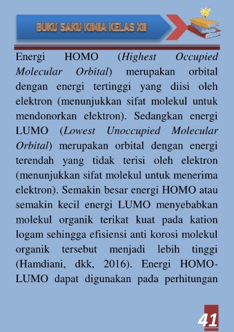 (Hamdiani, dkk, 2016). Energi HOMO-