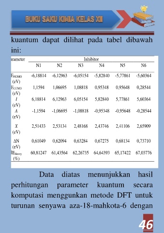 kuantum dapat dilihat pada tabel dibawah
