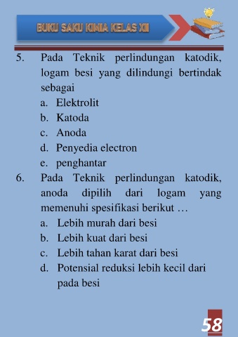 5. Pada Teknik perlindungan katodik,