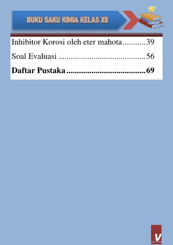 Inhibitor Korosi oleh eter mahota ........... 39 Soal Evaluasi .......................................... 56 Daftar Pustaka ...................................... 69 v
