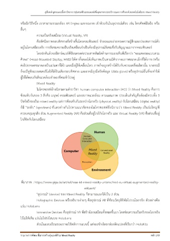 ไมโครซอฟท์อ้างนิยามตามตำราวิชา human computer interaction (HCI) ว่า Mixed Reality คือการ