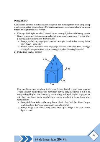 a. Berapakah luas kain tenda yang harus dibeli oleh Pani dan Limu dengan
