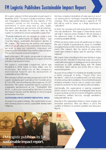 FM Logistic released its first sustainable impact report in We have completed installation of solar panels at one of