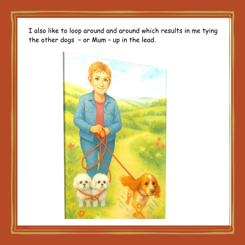 I also like to loop around and around which results in me tying the other dogs – or Mum – up in the lead.