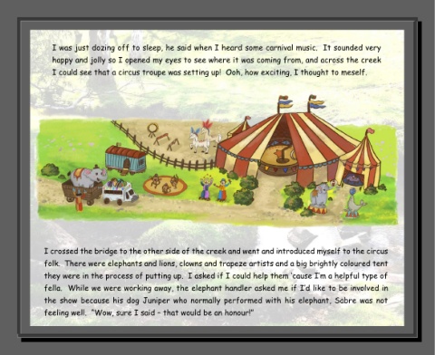 I could see that a circus troupe was setting up! Ooh, how exciting, I thought to meself.