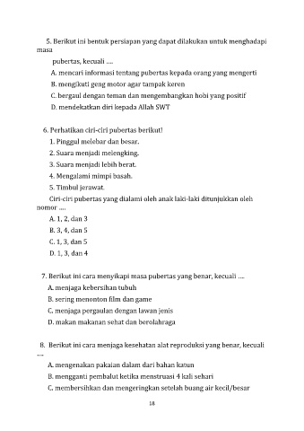 7. Berikut ini cara menyikapi masa pubertas yang benar, kecuali ….