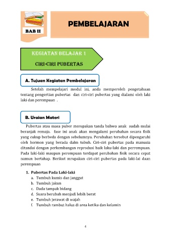 namun bertahap. Berikut mrupakan ciri-ciri pubertas pada laki-lai daan