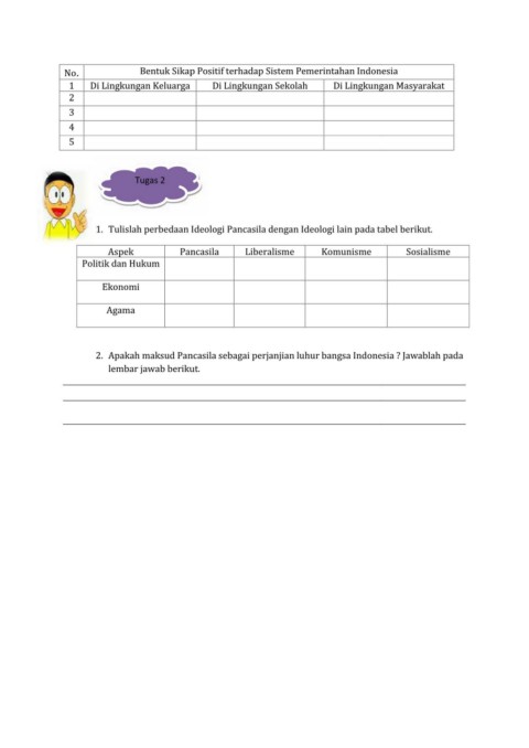 1. Tulislah perbedaan Ideologi Pancasila dengan Ideologi lain pada tabel berikut...