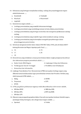 10. Kekuasaan yang bertugas menjalankan undang- undang dan penyelenggaraan negara
