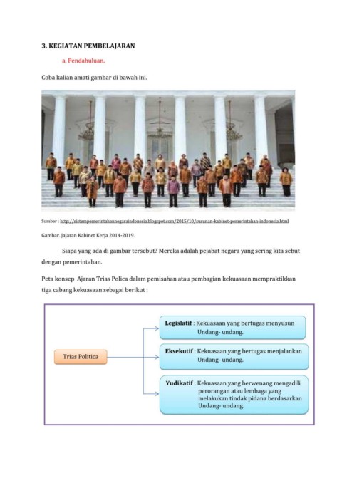 Peta konsep Ajaran Trias Polica dalam pemisahan atau pembagian kekuasaan mempraktikkan