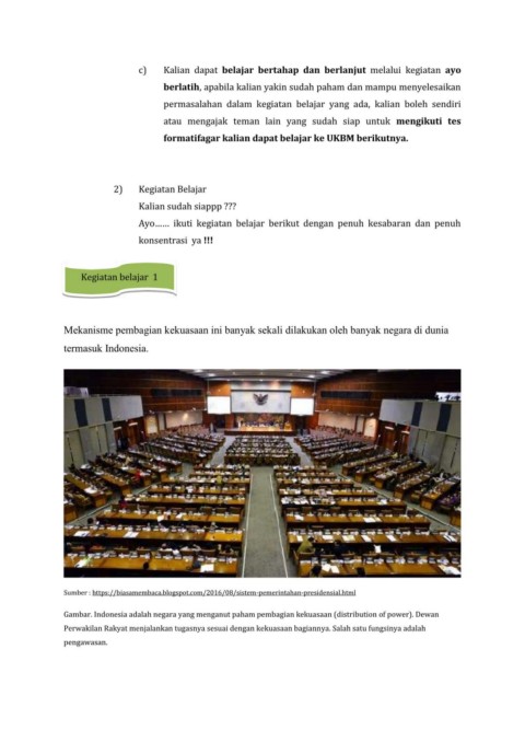 Gambar. Indonesia adalah negara yang menganut paham pembagian kekuasaan (distribution of power). Dewan