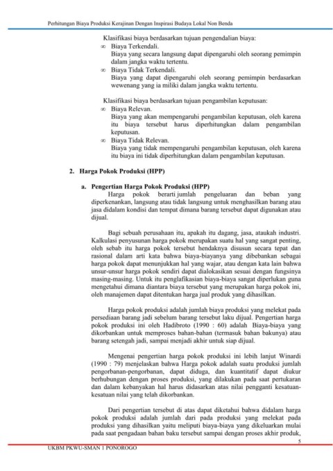 Perhitungan Biaya Produksi Kerajinan Dengan Inspirasi Budaya Lokal Non Benda