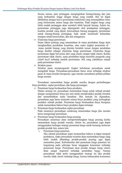 Perhitungan Biaya Produksi Kerajinan Dengan Inspirasi Budaya Lokal Non Benda