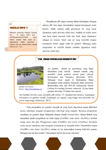 sanitasi dan air minum harus memiliki pH keasamaan relatif tinggi ialah air gambut. Sehingga perlu