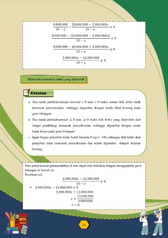 a. Jika tanda pertidaksamaan rasional < 0 atau > 0 maka semua titik kritis tidak