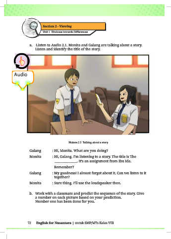 a. Listen to Audio 2.1. Monita and Galang are talking about a story.