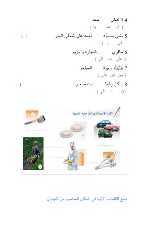 دعس نخدت لا 4 ي ا ) ب ( ل اي ( رحبلا ئطاش ىلع دمحأ دومحم ىشم 5 و ) يف ميرم اي ةرايسلا . يرفاس 6 ) ىلإ ب ىلع ( َ َ معطملا ةبجو تَبلط 7 َ ) ىلع نع نم ( ِ َ َ ( ريغص تيب ديِشر نكْسَي 8 َ ) يف اي نم لودجلا نم بسانملا ناكملا يف ةيتلآا تاملكلا عض