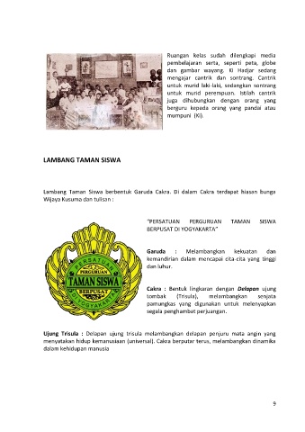 Lambang Taman Siswa berbentuk Garuda Cakra. Di dalam Cakra terdapat hiasan bunga