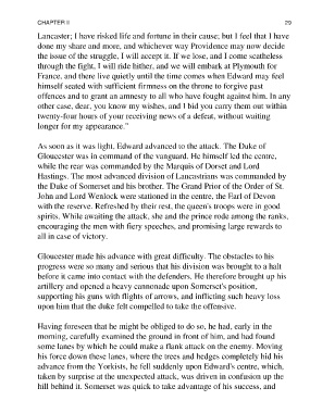 As soon as it was light, Edward advanced to the attack. The Duke of