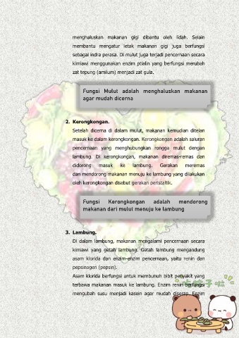 menghaluskan makanan gigi dibantu oleh lidah. Selain