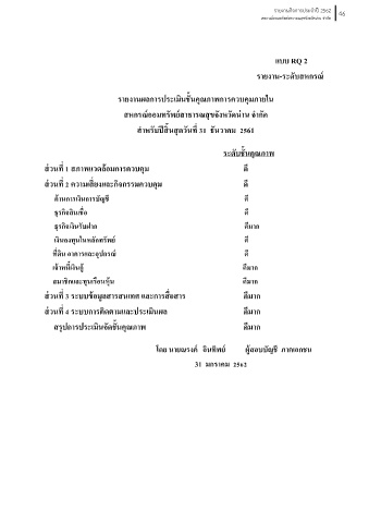 รายงานผลการประเมินชนคุณภาพการควบคุมภายใน