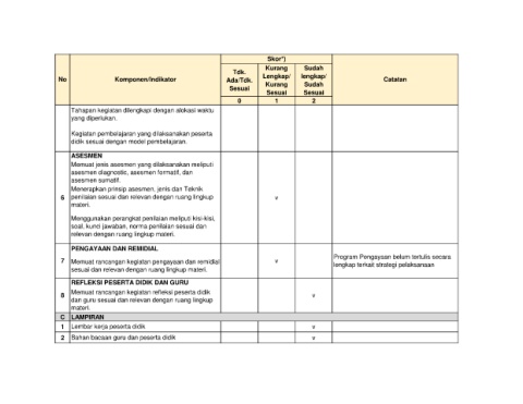 No Komponen/Indikator Ada/Tdk. Lengkap/ lengkap/ Catatan
