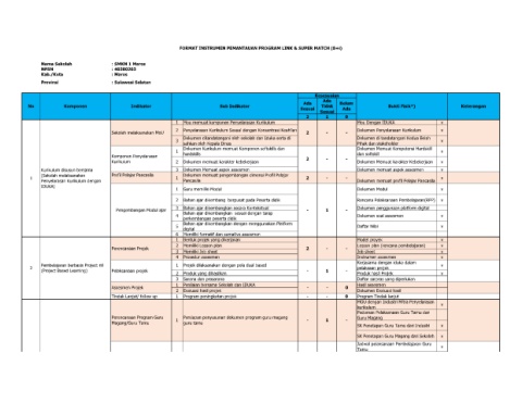 FORMAT INSTRUMEN PEMANTAUAN PROGRAM LINK & SUPER MATCH (8+i)