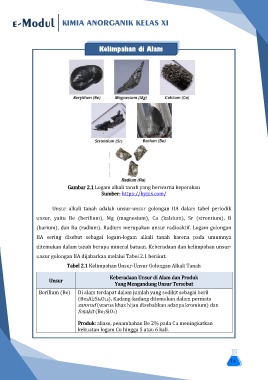unsur, yaitu Be (berilium), Mg (magnesium), Ca (kalsium), Sr (strontium), B