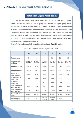 Sifat-sifat lain golongan alkali tanah ditunjukkan dalam Tabel 2.2 berikut.