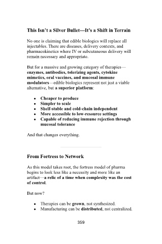 No one is claiming that edible biologics will replace all