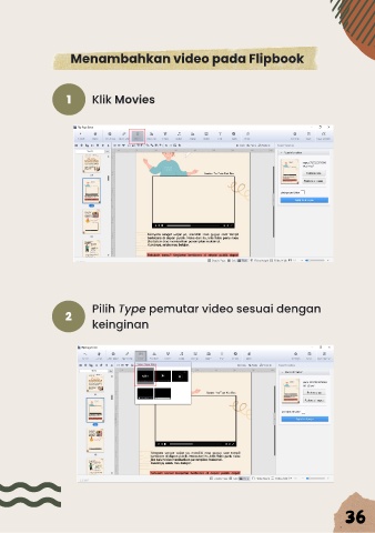 Menambahkan video pada Flipbook 1 Klik Movies Pilih Type pemutar video sesuai dengan 2 keinginan 36