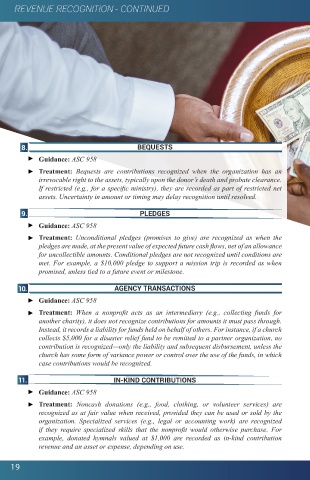 for uncollectible amounts. Conditional pledges are not recognized until conditions are ► recognition timing varies, necessitating clear communication.