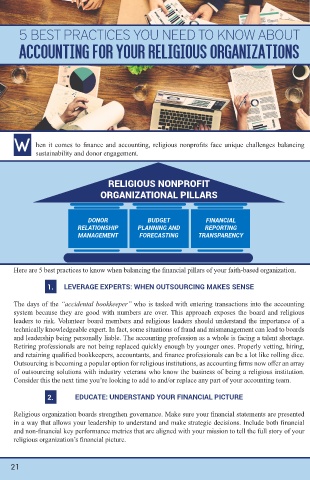 W hen it comes to finance and accounting, religious nonprofits face unique challenges balancing