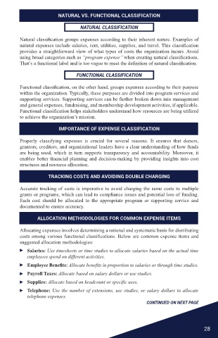 PREPARING A STATEMENT OF FUNCTIONAL EXPENSES Properly classifying expenses is crucial for several reasons. It ensures that donors,