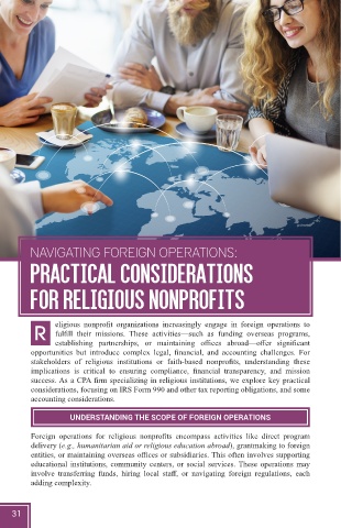 considerations, focusing on IRS Form 990 and other tax reporting obligations, and some Religious nonprofits operating in both the U.S. and overseas must navigate distinct