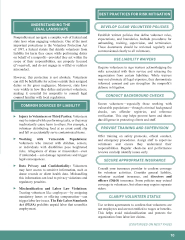 risks that nonprofits must proactively manage. From practices for mitigating those risks through thoughtful coverage to volunteers, but others may require separate