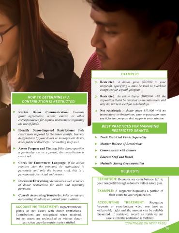 and the donor could potentially reclaim the grant if ensure proper classification and compliance. EXAMPLE: A supporter bequeaths a portion of