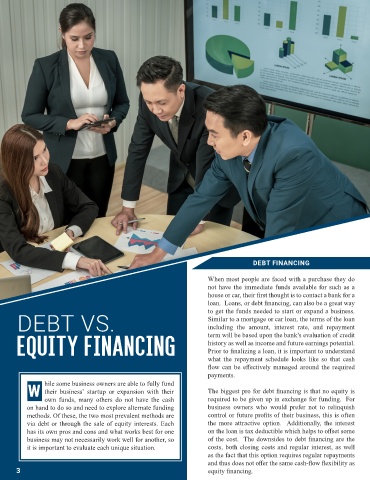 the terms of the equity financing will be dictated by the for them. Debt financing requires regular repayments