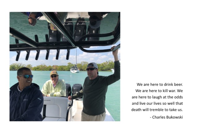 We are here to drink beer. We are here to kill war. We are here to laugh at the odds and live our lives so well that death will tremble to take us. - Charles Bukowski