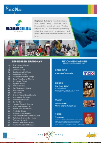 SEPTEMBER BIRTHDAYS                                        RECOMMENDATIONS