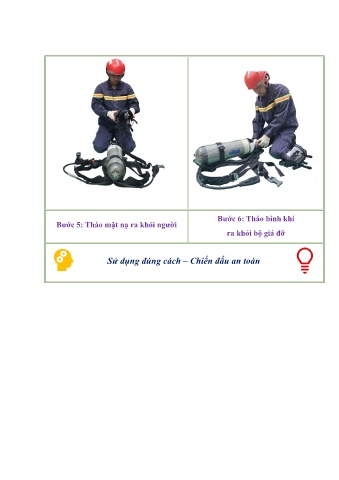Bước 6: Tháo bình khí Bước 5: Tháo mặt nạ ra khỏi người ra khỏi bộ giá đỡ Sử dụng đúng cách – Chiến đấu an toàn