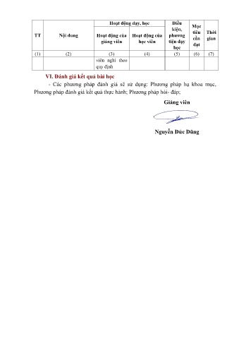 TT Nội dung Hoạt động của Hoạt động của phương tiêu Thời