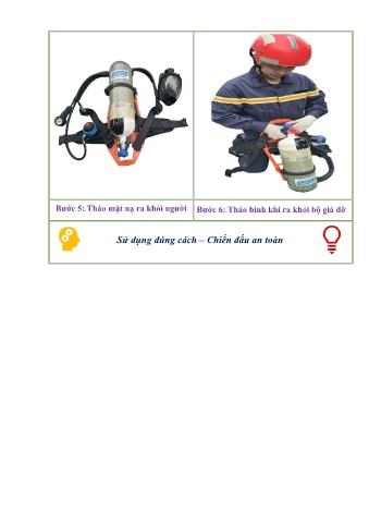 Bước 5: Tháo mặt nạ ra khỏi người Bước 6: Tháo bình khí ra khỏi bộ giá đỡ Sử dụng đúng cách – Chiến đấu an toàn
