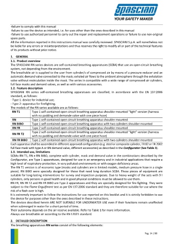 SPASCIANI RN series self-contained breathing apparatuses are classified, in accordance with the EN 137:2006